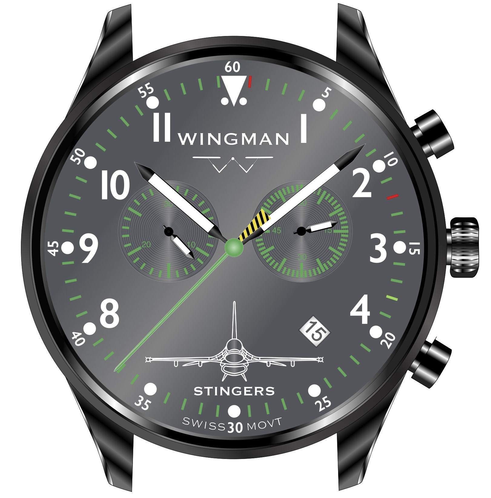 - Our “Americhrono” watch using a high-end Swiss chronograph movement.