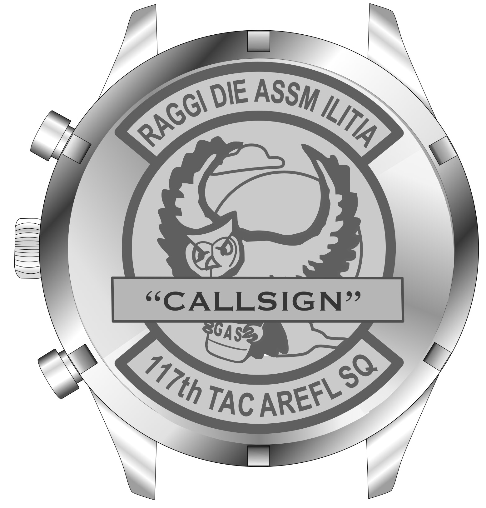 Caseback Orientation:  Please note that the caseback “design” pictured in this gallery is oriented exactly in line with the watch face for presentation purposes only.  During production, the caseback is a separate piece of the watch.  When the casebacks are engraved with the airframe design, they are not attached to the rest of the case at that time.  Since both the casebacks and cases are threaded separately, when the engraved caseback  is then screwed onto the case, the final tightening point will result in the caseback design not being in the exact orientation in relation to the watch face.  And there will be some variation from watch to watch.