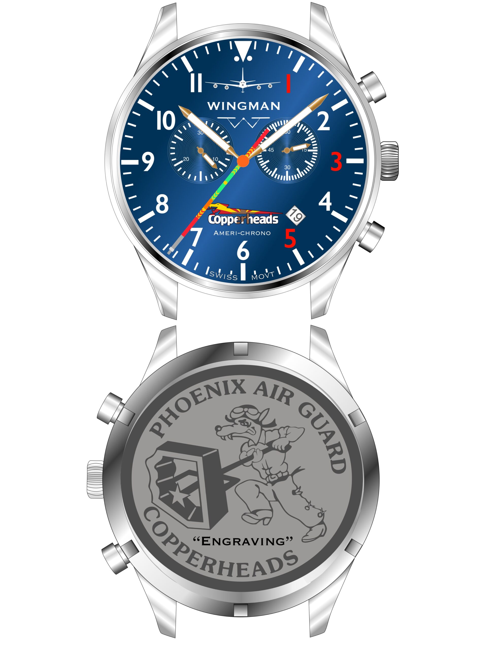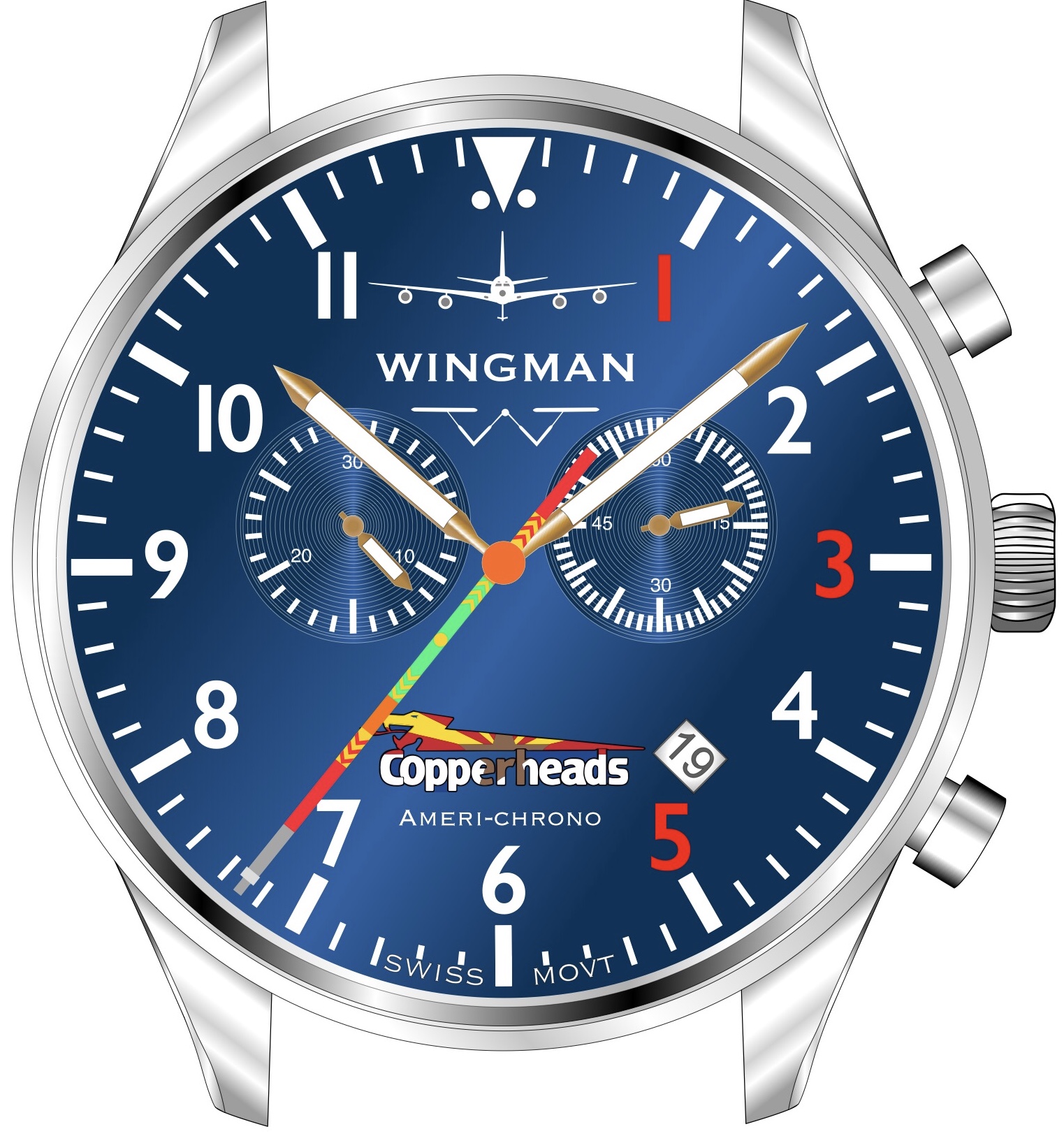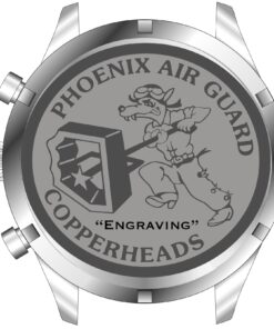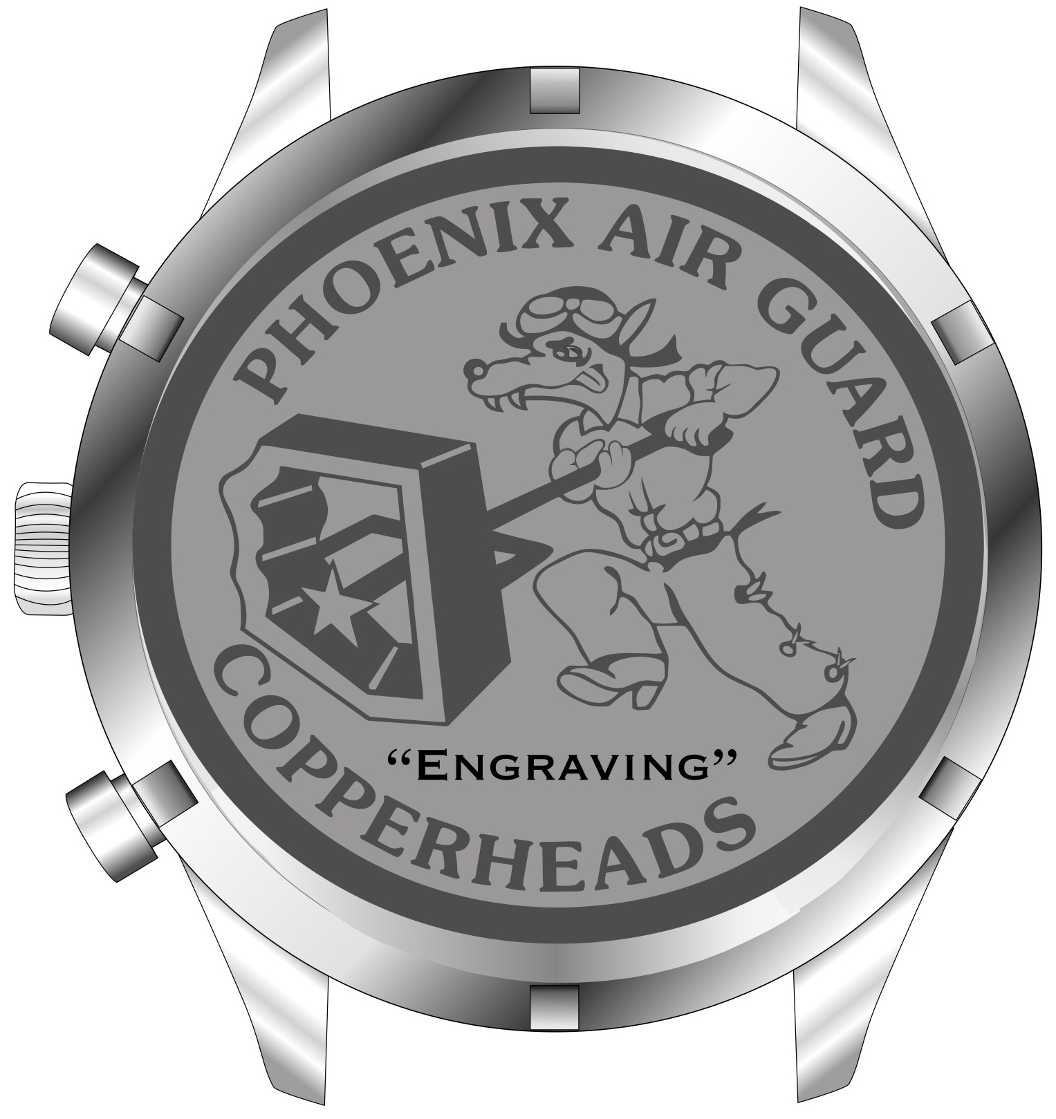 Caseback Orientation:  Please note that the caseback “design” pictured in this gallery is oriented exactly in line with the watch face for presentation purposes only.  During production, the caseback is a separate piece of the watch.  When the casebacks are engraved with the airframe design, they are not attached to the rest of the case at that time.  Since both the casebacks and cases are threaded separately, when the engraved caseback  is then screwed onto the case, the final tightening point will result in the caseback design not being in the exact orientation in relation to the watch face.  And there will be some variation from watch to watch.