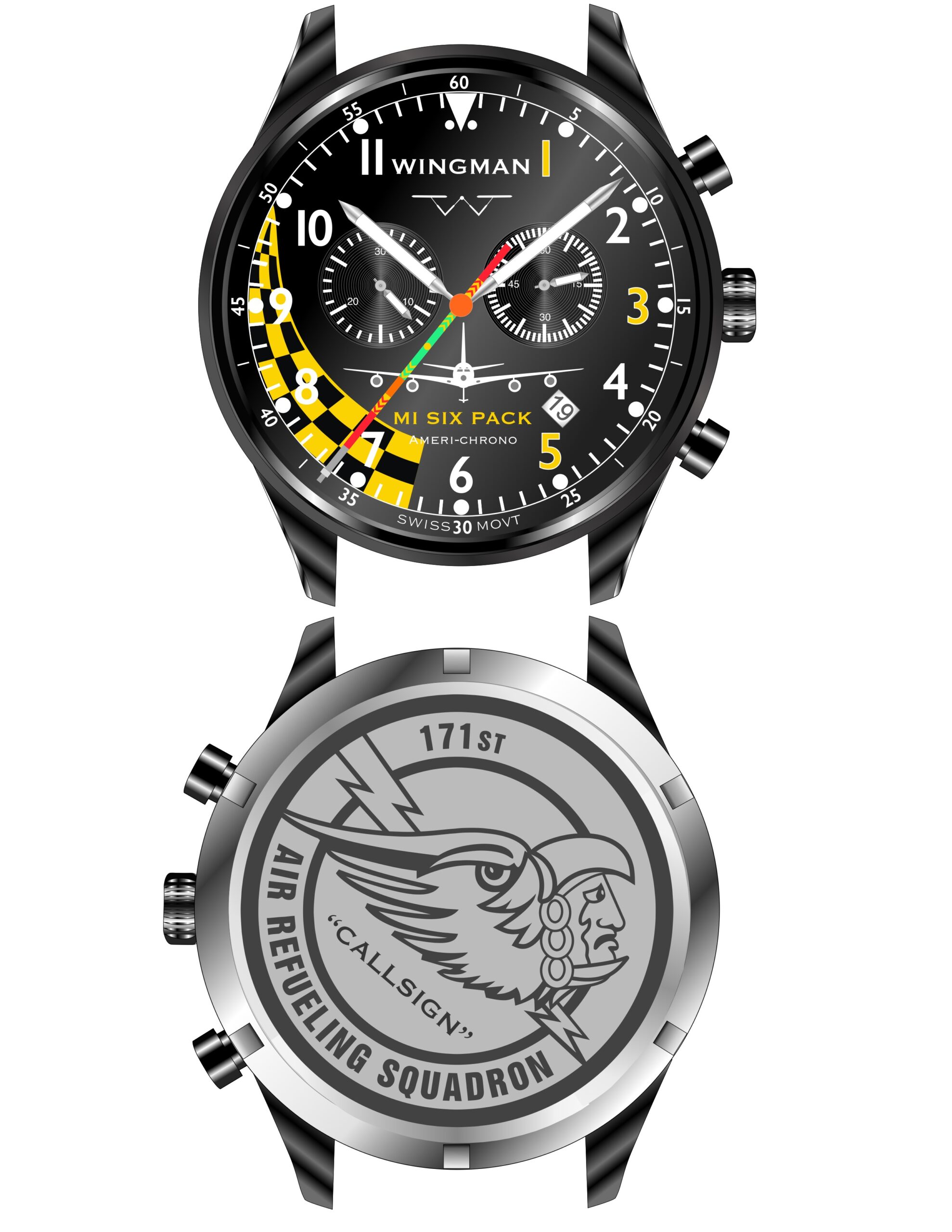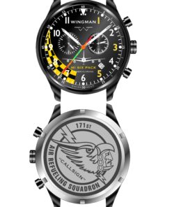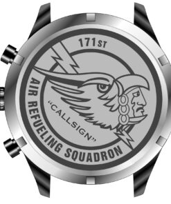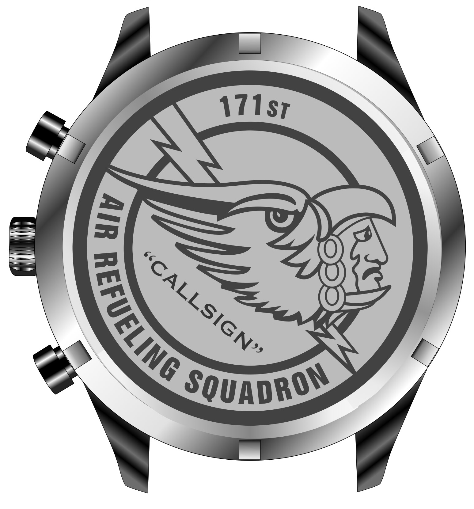 Caseback Orientation:  Please note that the caseback “design” pictured in this gallery is oriented exactly in line with the watch face for presentation purposes only.  During production, the caseback is a separate piece of the watch.  When the casebacks are engraved with the airframe design, they are not attached to the rest of the case at that time.  Since both the casebacks and cases are threaded separately, when the engraved caseback  is then screwed onto the case, the final tightening point will result in the caseback design not being in the exact orientation in relation to the watch face.  And there will be some variation from watch to watch.