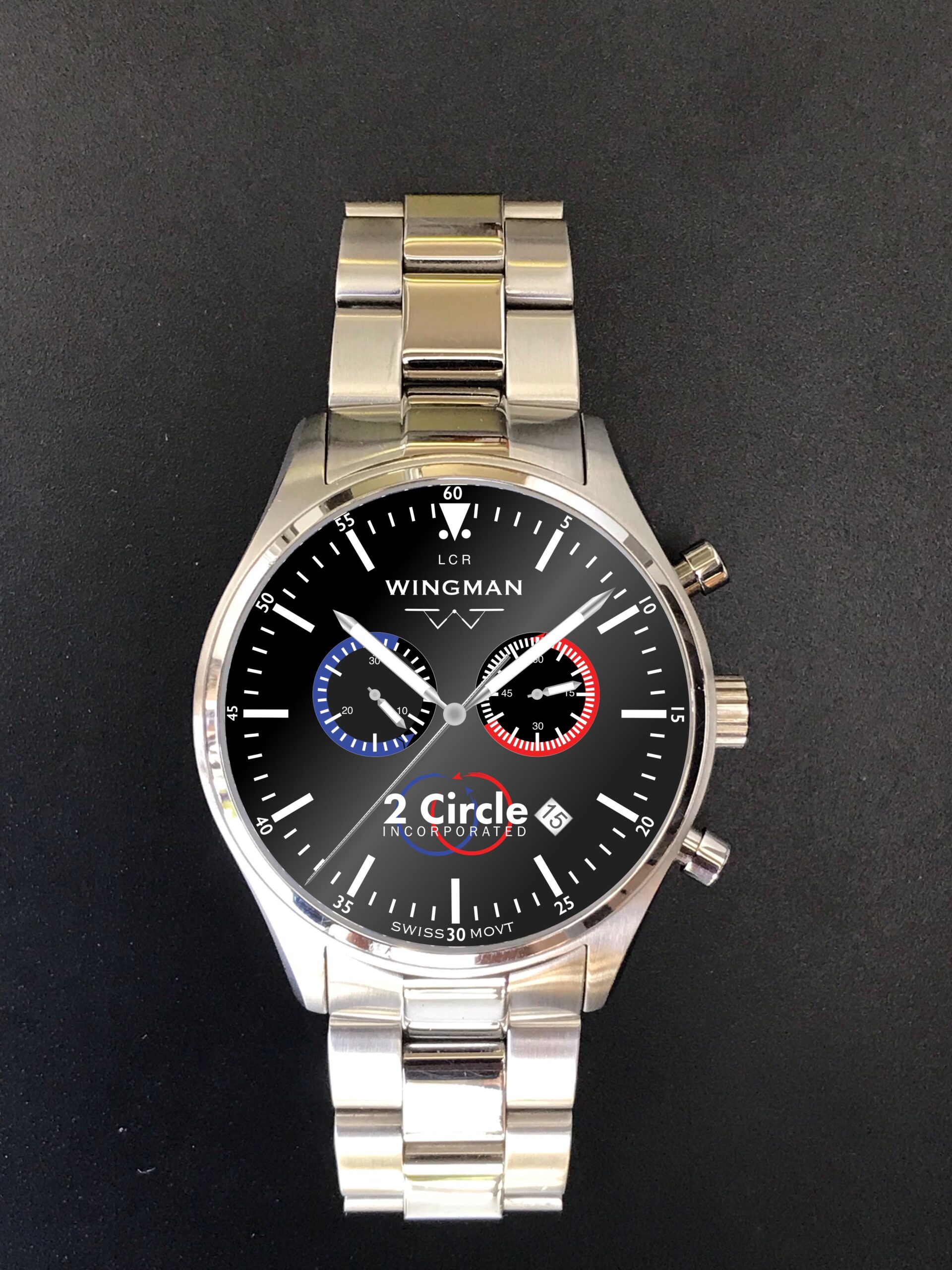 - Our “Americhrono” watch using a high-end Swiss chronograph movement.