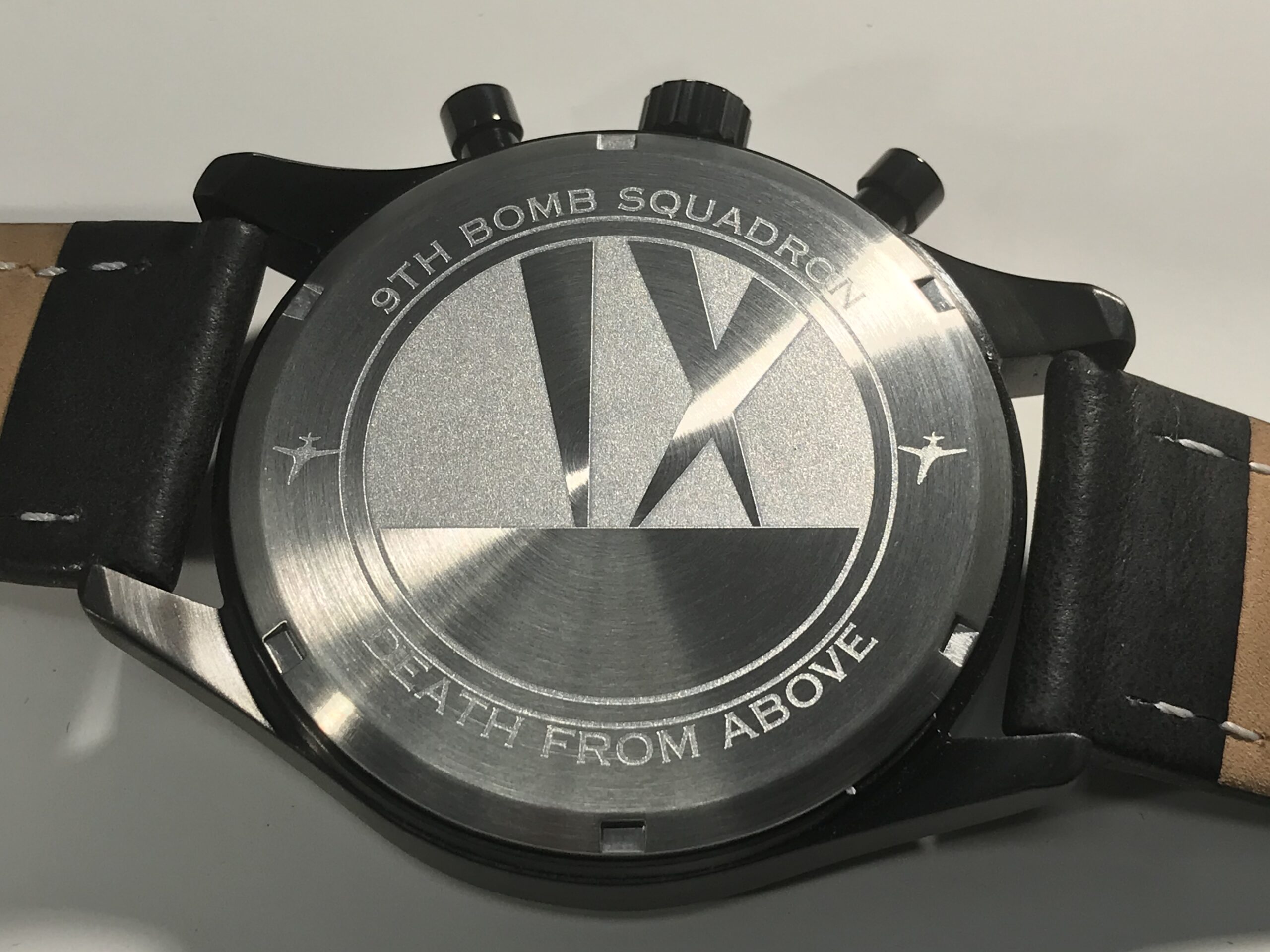 - The case-back is screwed on and engraved separately from the watch to protect the movement from damage from the laser. This process is used in most high-end watches and leads to the caseback engraving not “lining up” with the watch.