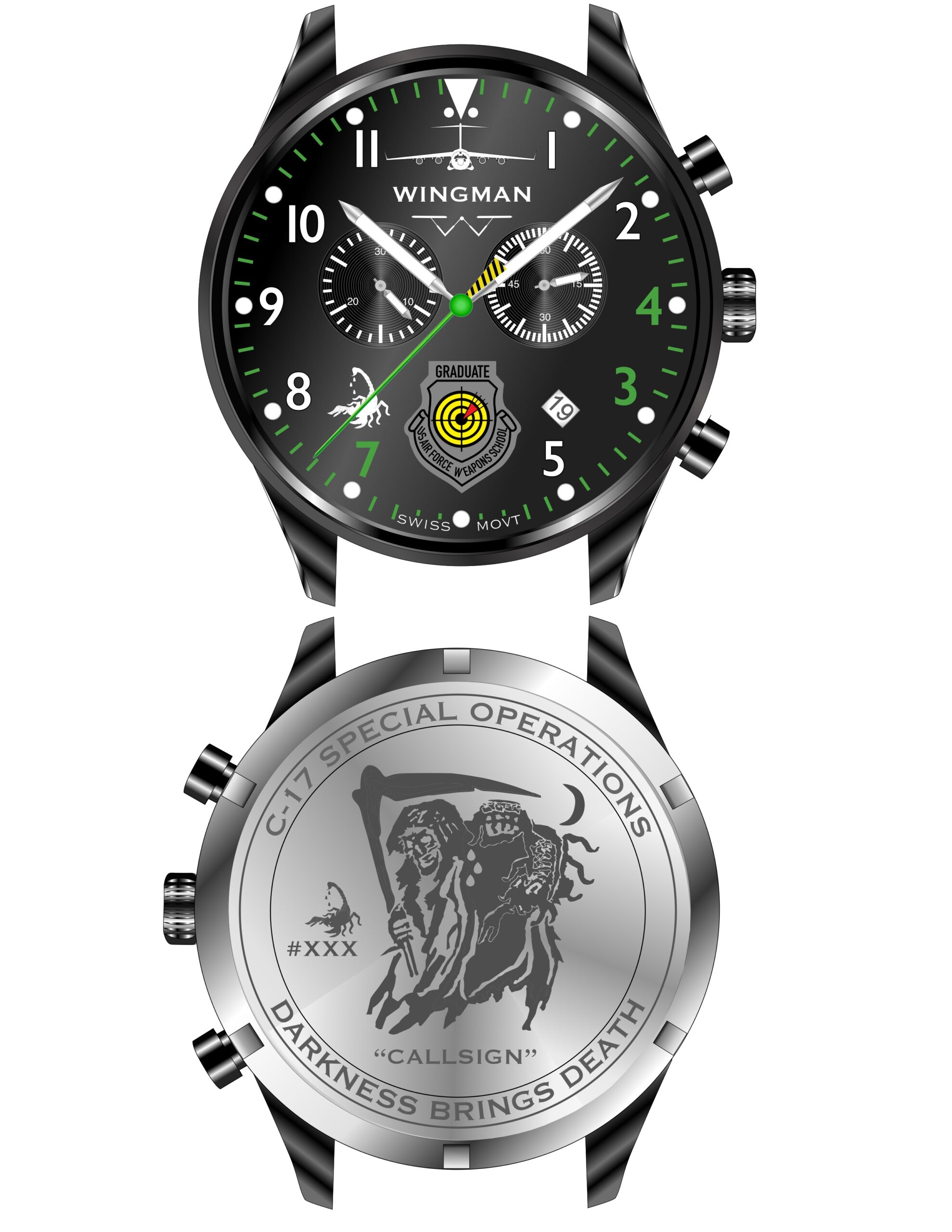 - Our “Americhrono” watch using a high-end Swiss chronograph movement.