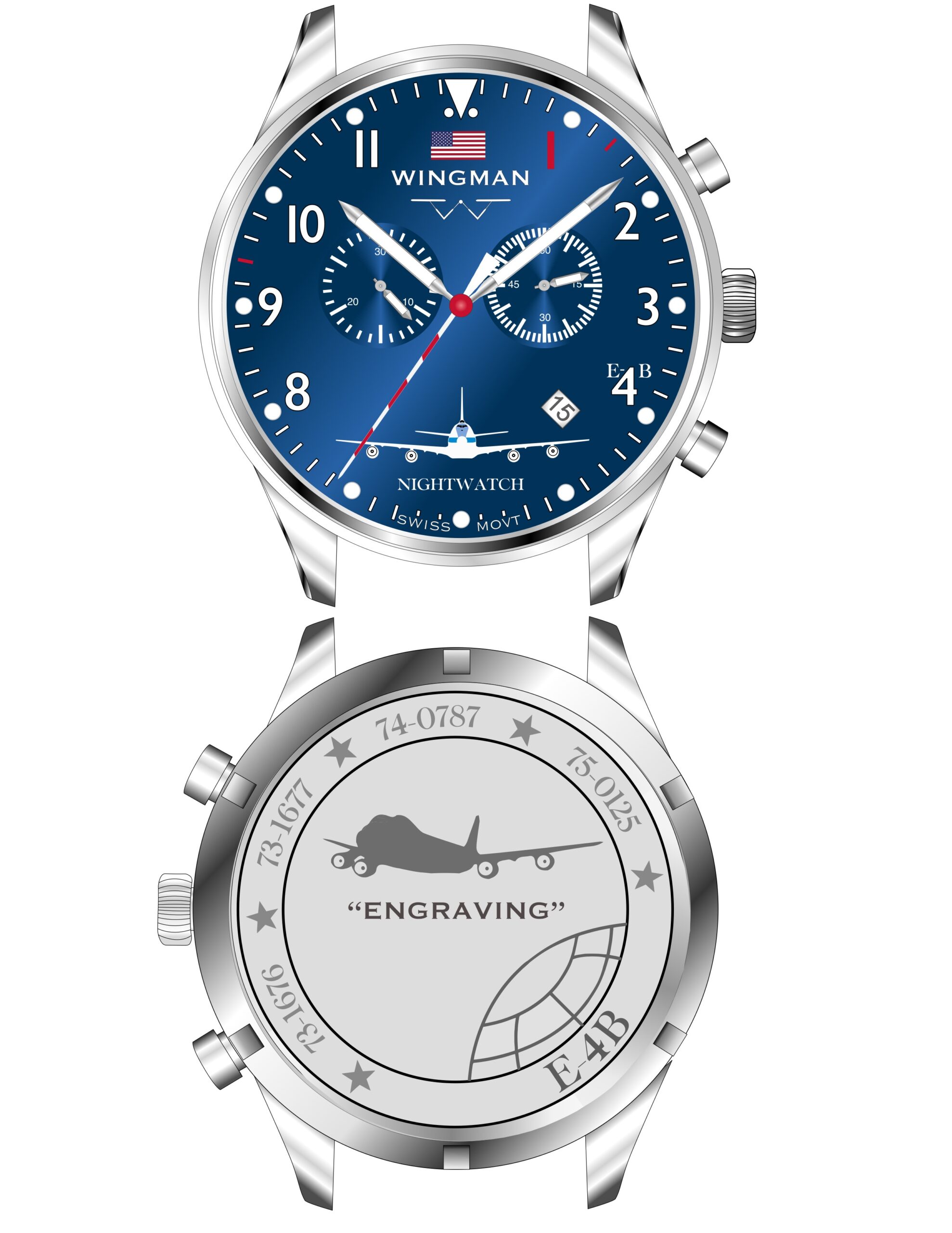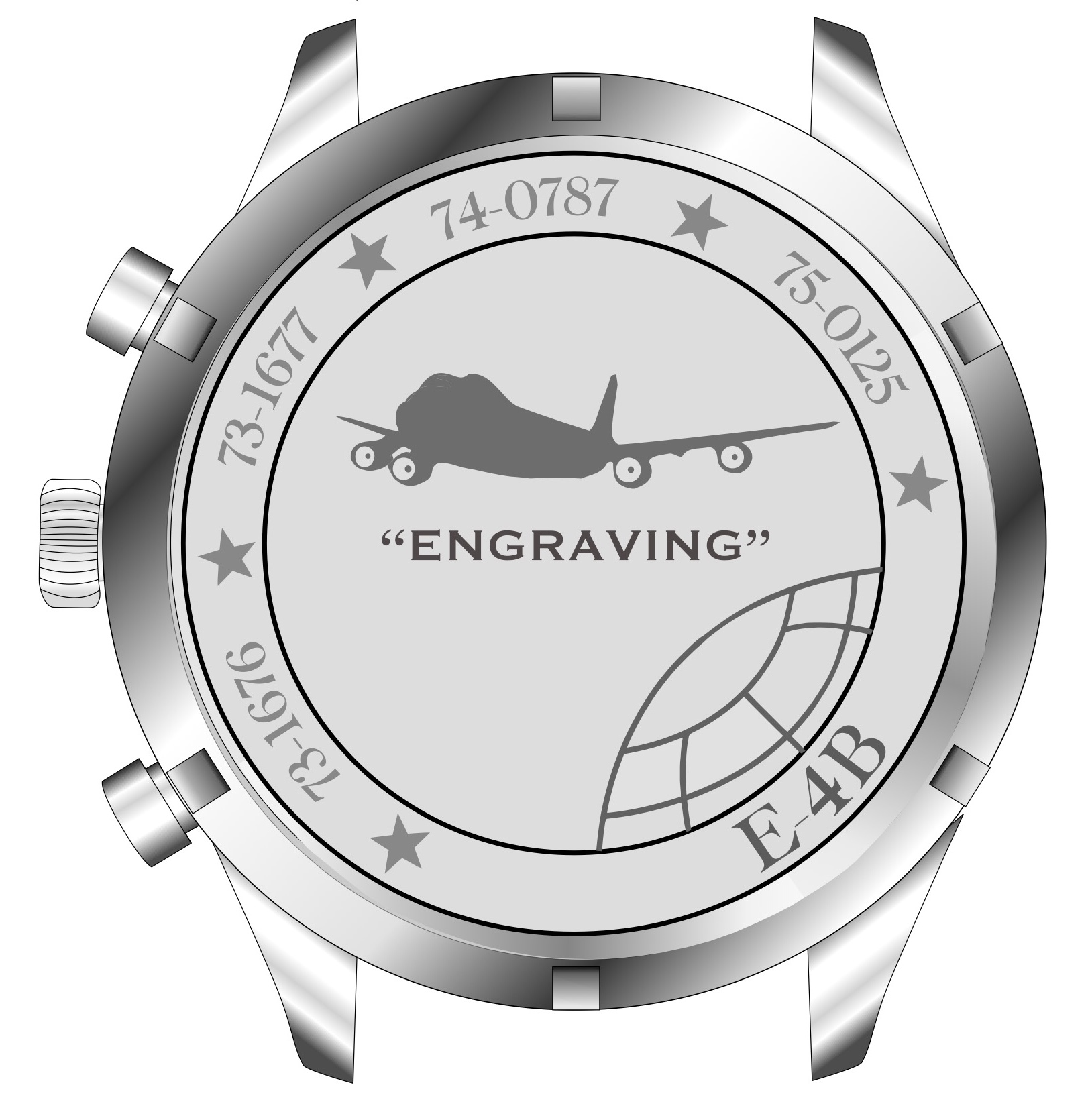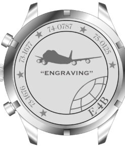 Caseback Orientation:  Please note that the caseback “design” pictured in this gallery is oriented exactly in line with the watch face for presentation purposes only.  During production, the caseback is a separate piece of the watch.  When the casebacks are engraved with the airframe design, they are not attached to the rest of the case at that time.  Since both the casebacks and cases are threaded separately, when the engraved caseback  is then screwed onto the case, the final tightening point will result in the caseback design not being in the exact orientation in relation to the watch face.  And there will be some variation from watch to watch.