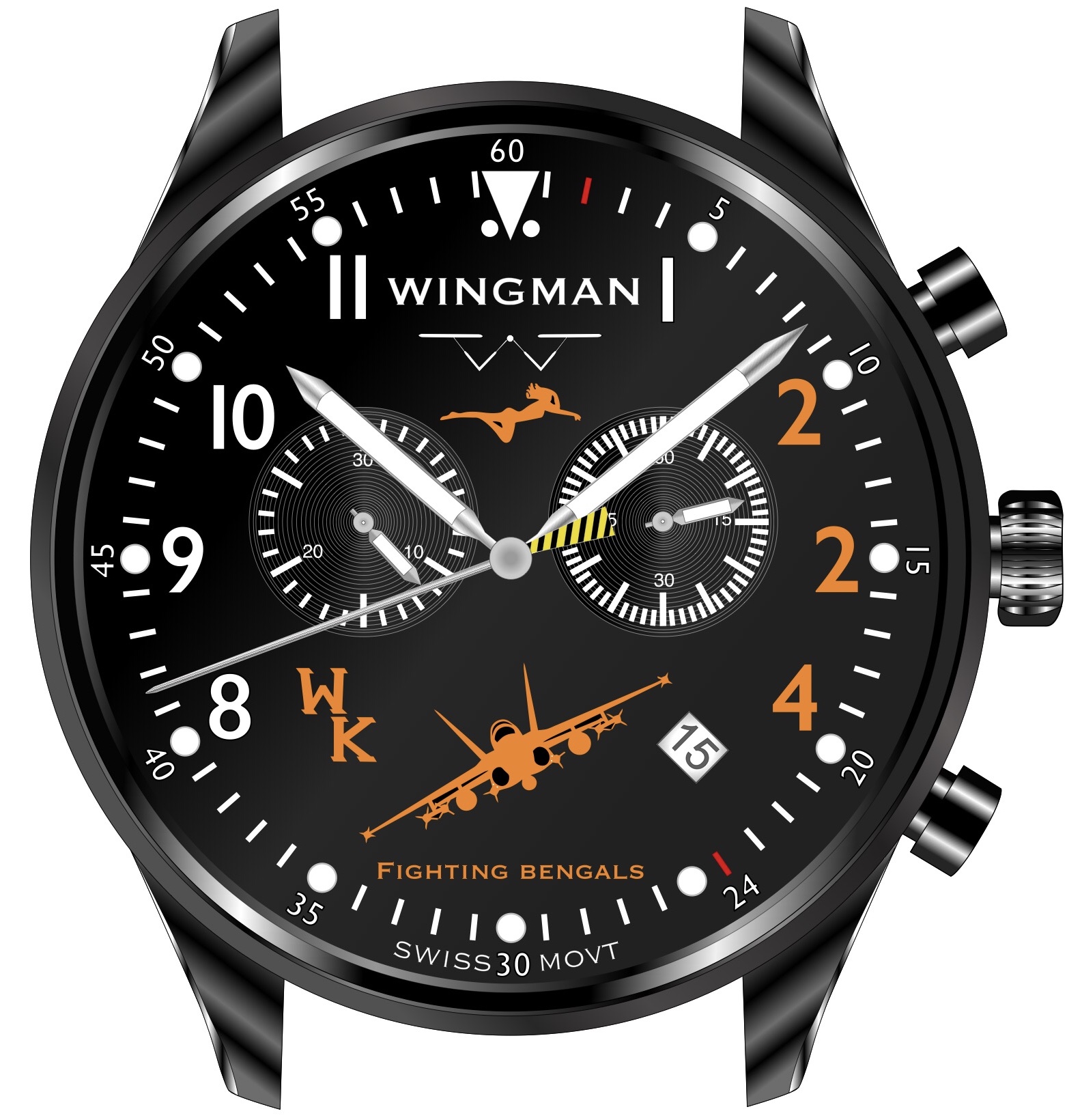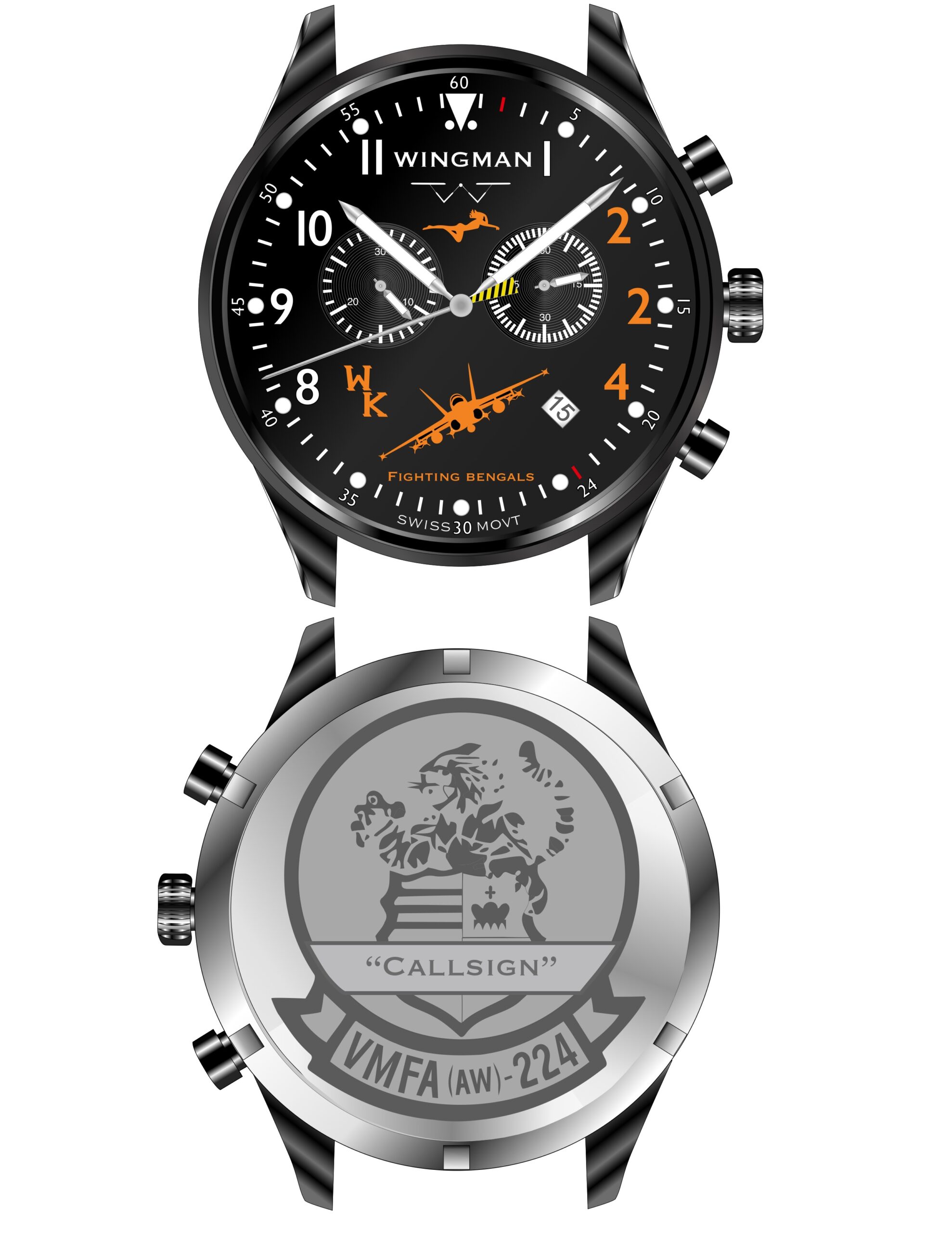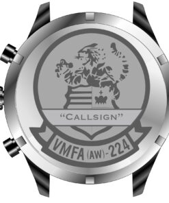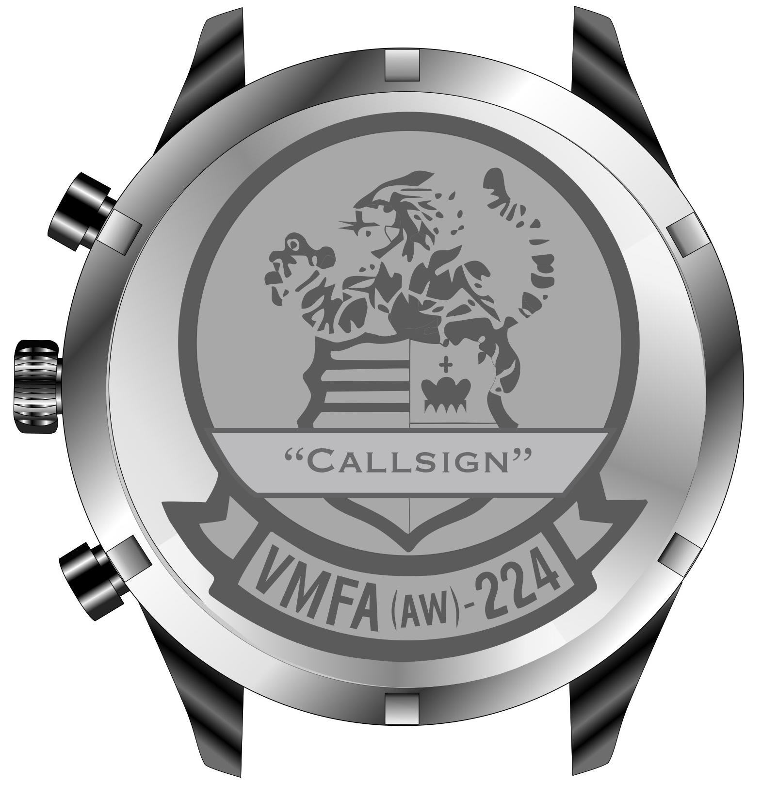 Caseback Orientation:  Please note that the caseback “design” pictured in this gallery is oriented exactly in line with the watch face for presentation purposes only.  During production, the caseback is a separate piece of the watch.  When the casebacks are engraved with the airframe design, they are not attached to the rest of the case at that time.  Since both the casebacks and cases are threaded separately, when the engraved caseback  is then screwed onto the case, the final tightening point will result in the caseback design not being in the exact orientation in relation to the watch face.  And there will be some variation from watch to watch.  This is evidenced in the actual caseback photos in this gallery.