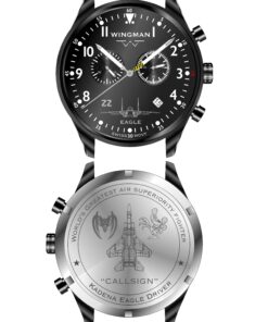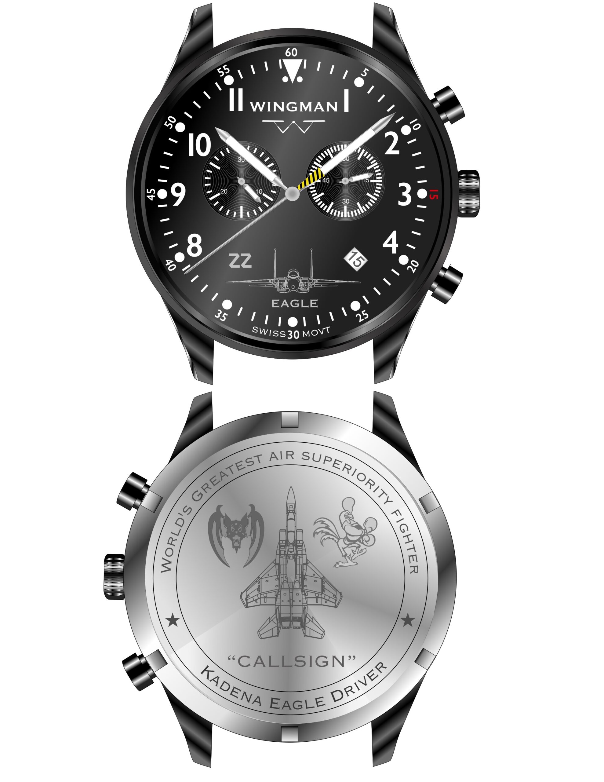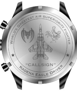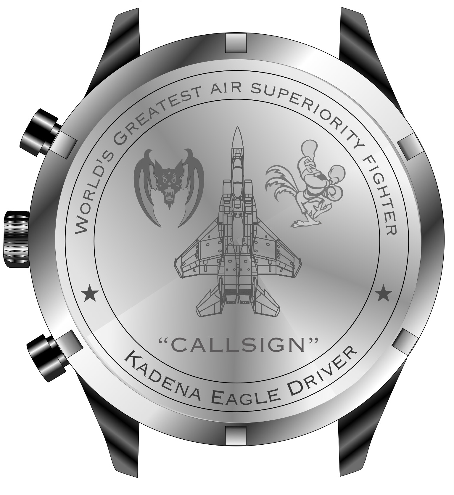 Caseback Orientation:  Please note that the caseback “design” pictured in this gallery is oriented exactly in line with the watch face for presentation purposes only.  During production, the caseback is a separate piece of the watch.  When the casebacks are engraved with the airframe design, they are not attached to the rest of the case at that time.  Since both the casebacks and cases are threaded separately, when the engraved caseback  is then screwed onto the case, the final tightening point will result in the caseback design not being in the exact orientation in relation to the watch face.  And there will be some variation from watch to watch.