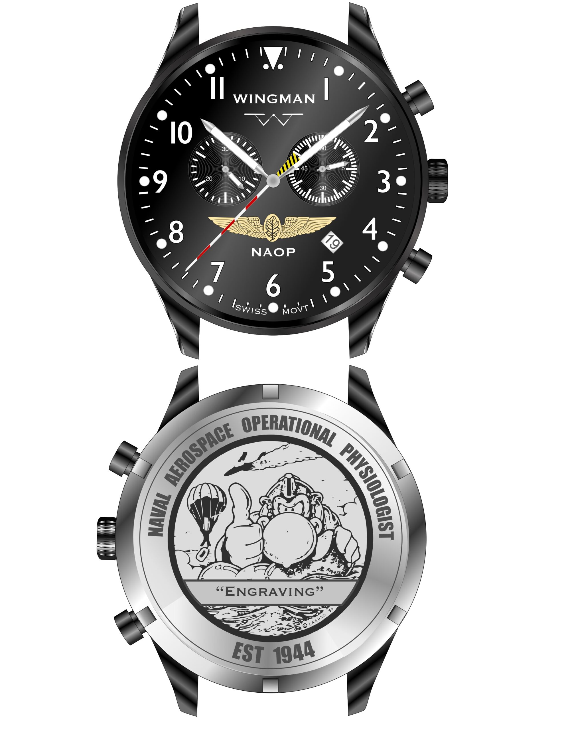 - Our “Americhrono” watch using a high-end Swiss chronograph movement.