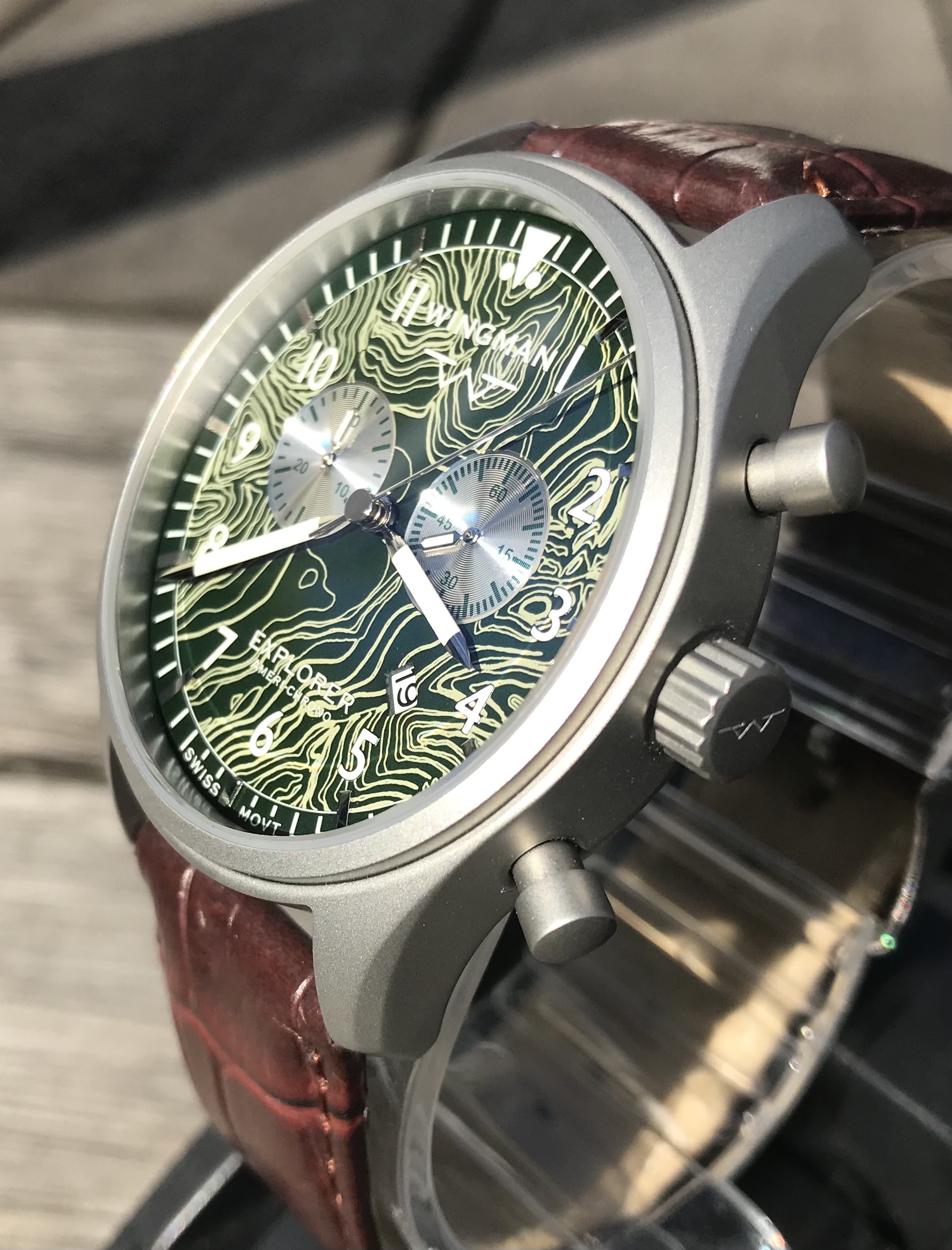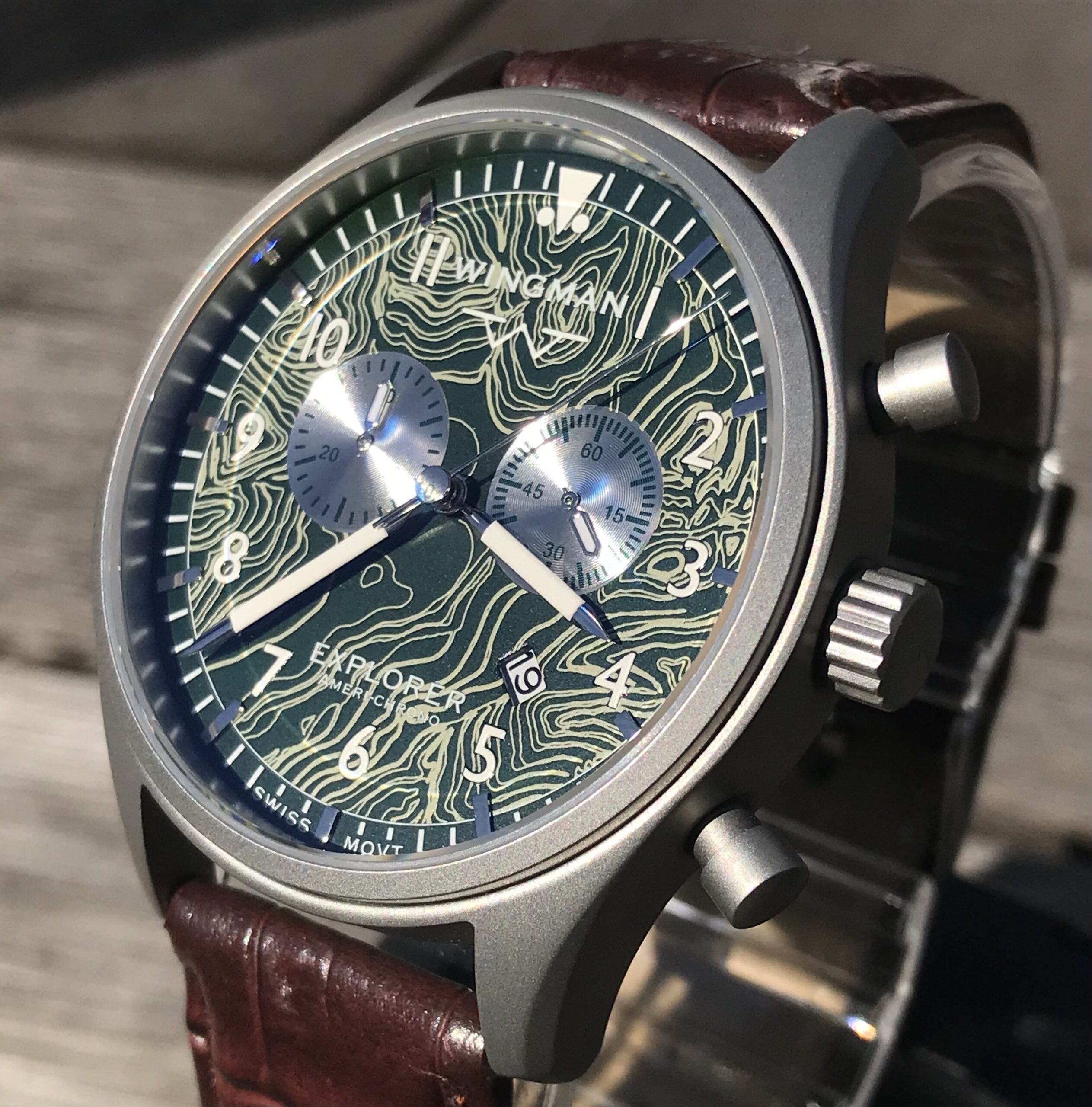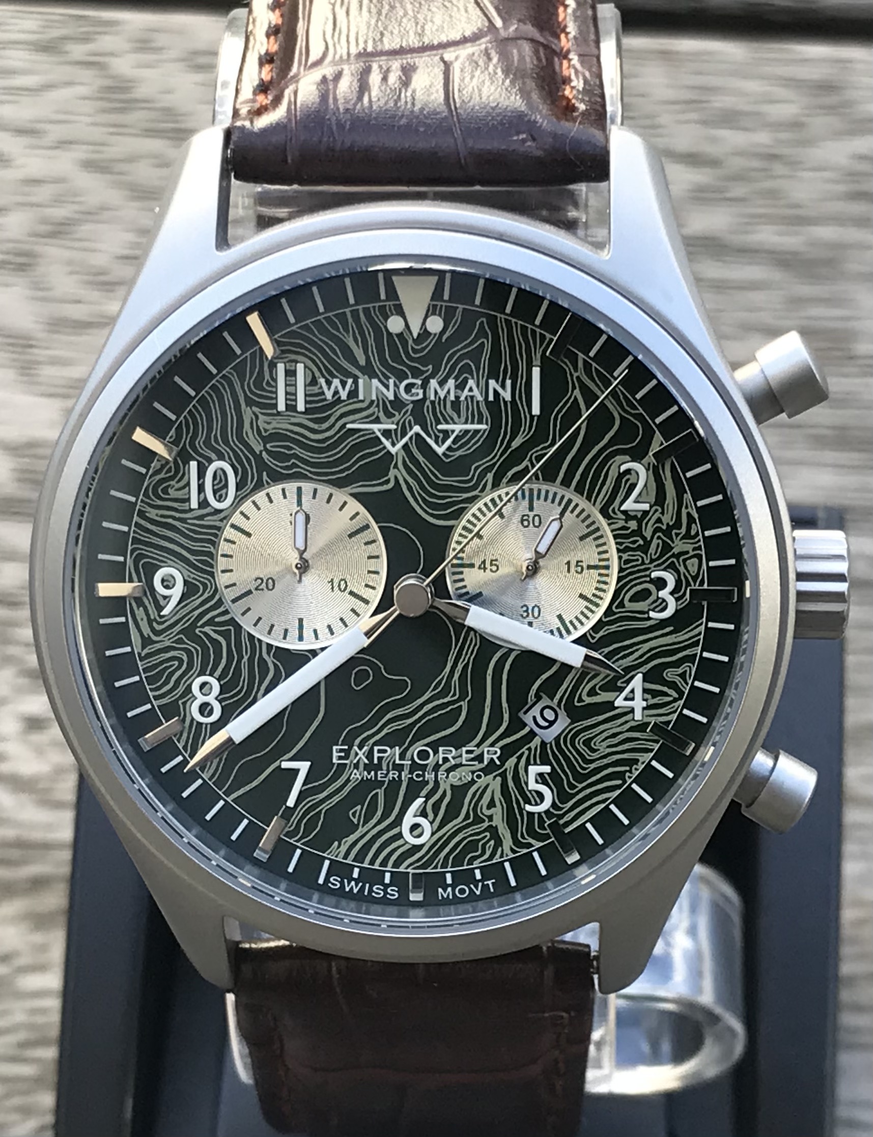 - Our “Americhrono” watch using a high-end Swiss chronograph movement.