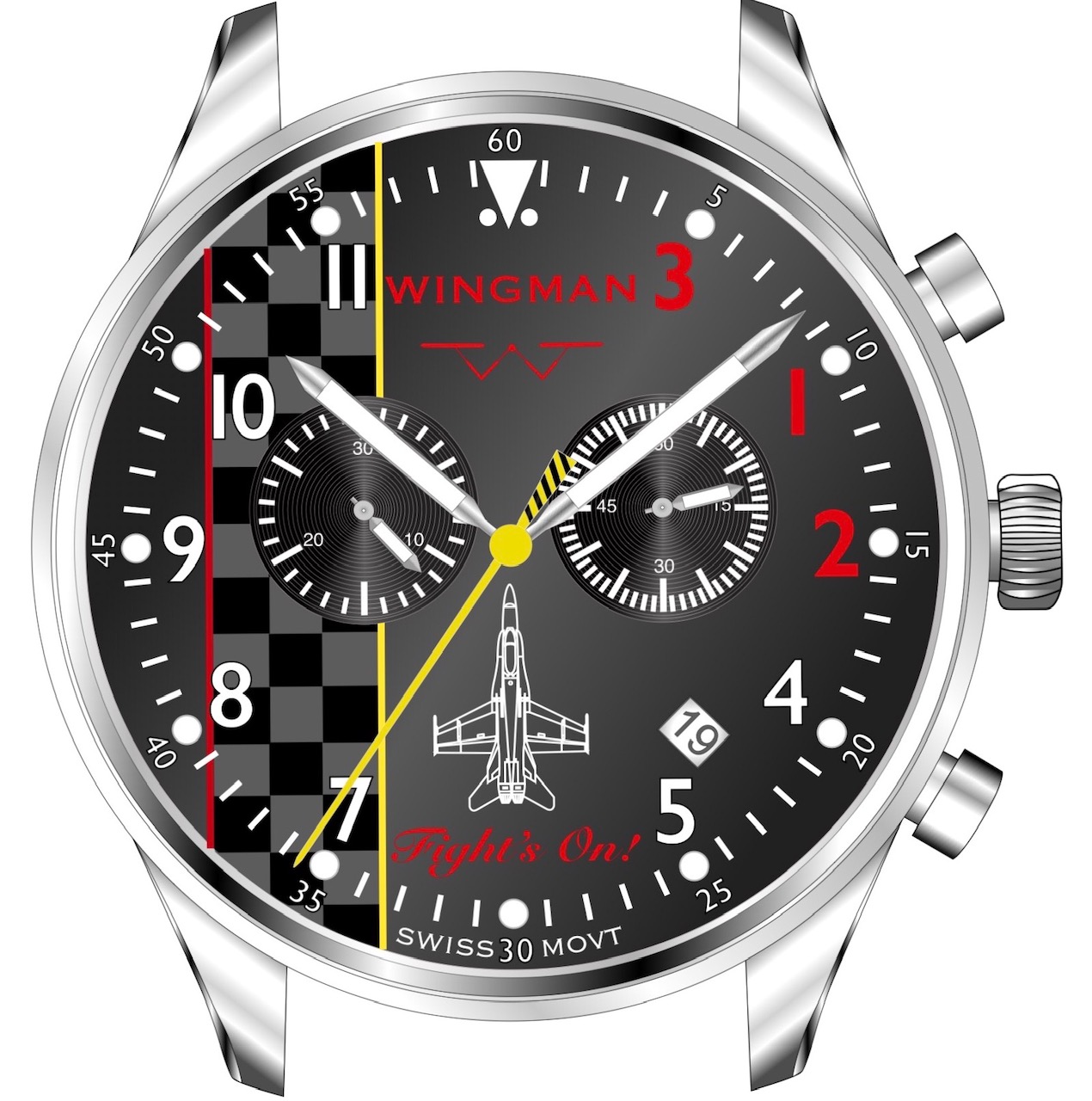 Caseback Orientation:  Please note that the caseback “design” pictured in this gallery is oriented exactly in line with the watch face for presentation purposes only.  During production, the caseback is a separate piece of the watch.  When the casebacks are engraved with the airframe design, they are not attached to the rest of the case at that time.  Since both the casebacks and cases are threaded separately, when the engraved caseback  is then screwed onto the case, the final tightening point will result in the caseback design not being in the exact orientation in relation to the watch face.  And there will be some variation from watch to watch.
