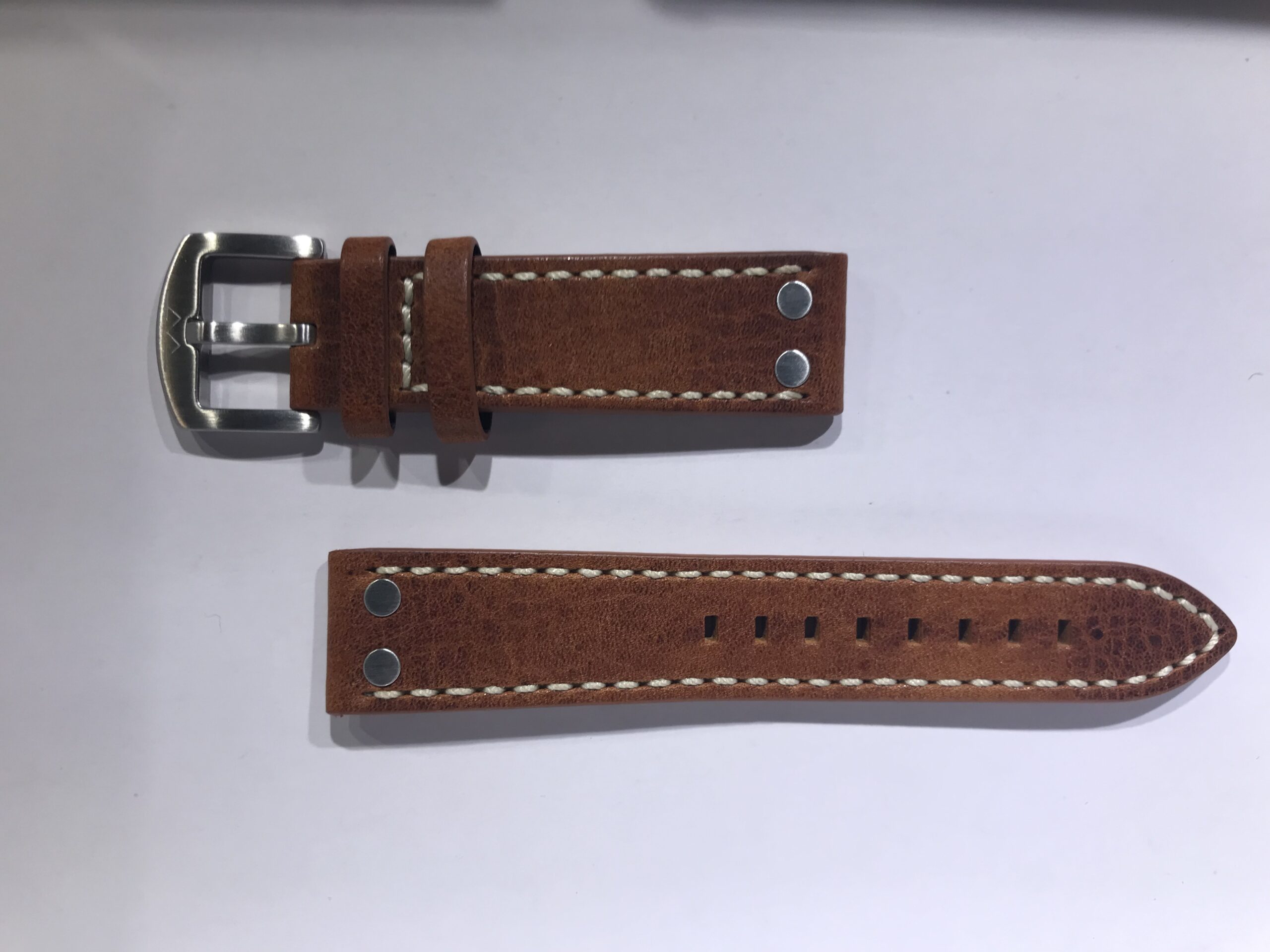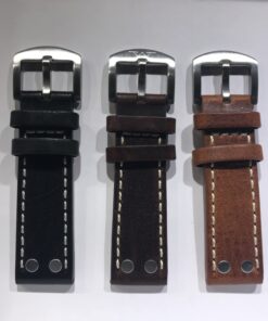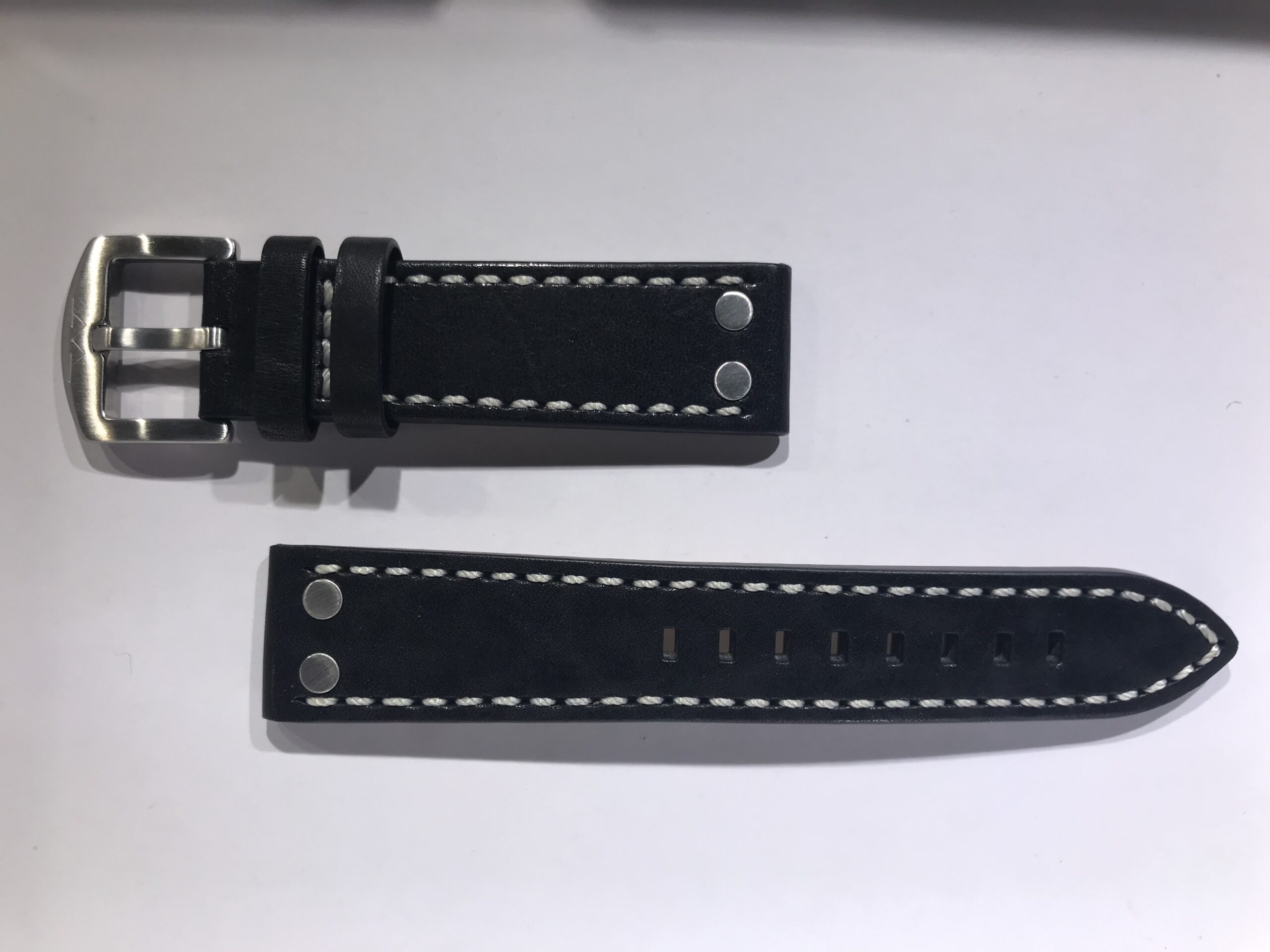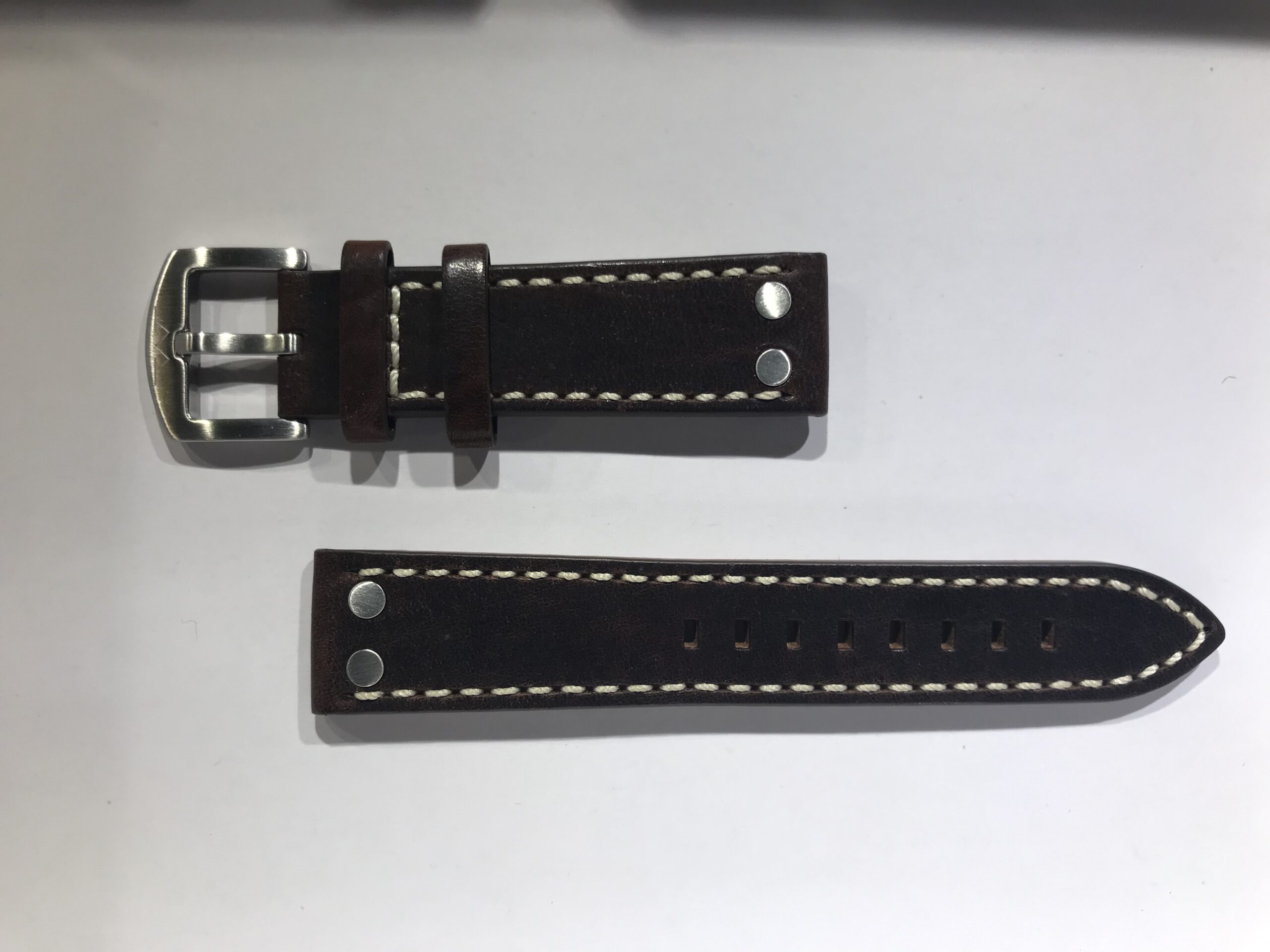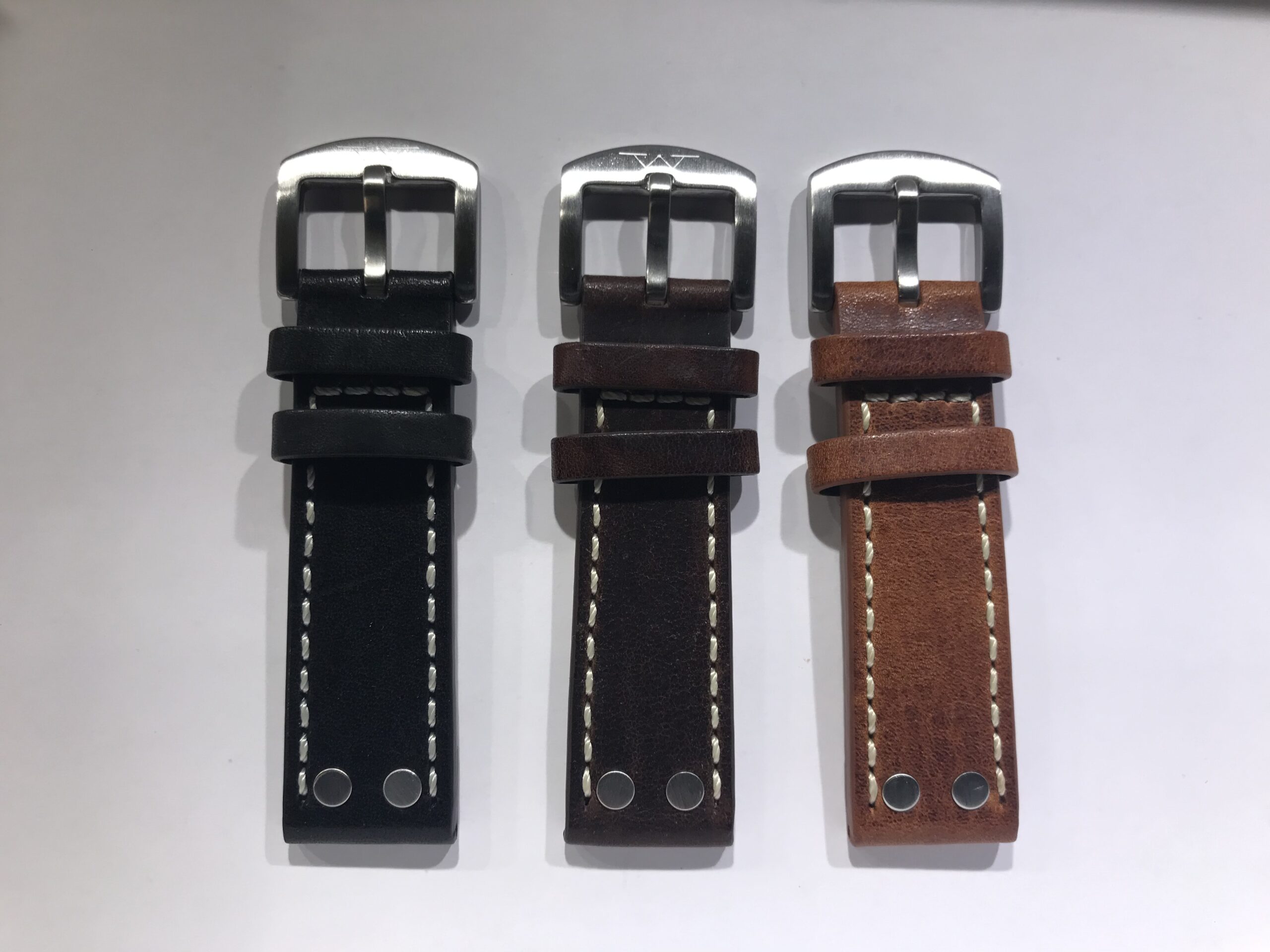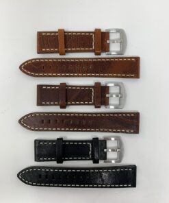 Individual stitched bands are made of premium grade strap leather and are slightly thicker than our “padded” leather stitched bands. They come standard with a brushed silver buckle and brushed silver rivets. They can be replaced on all Wingman Watch cases with our Band Changing Tool.